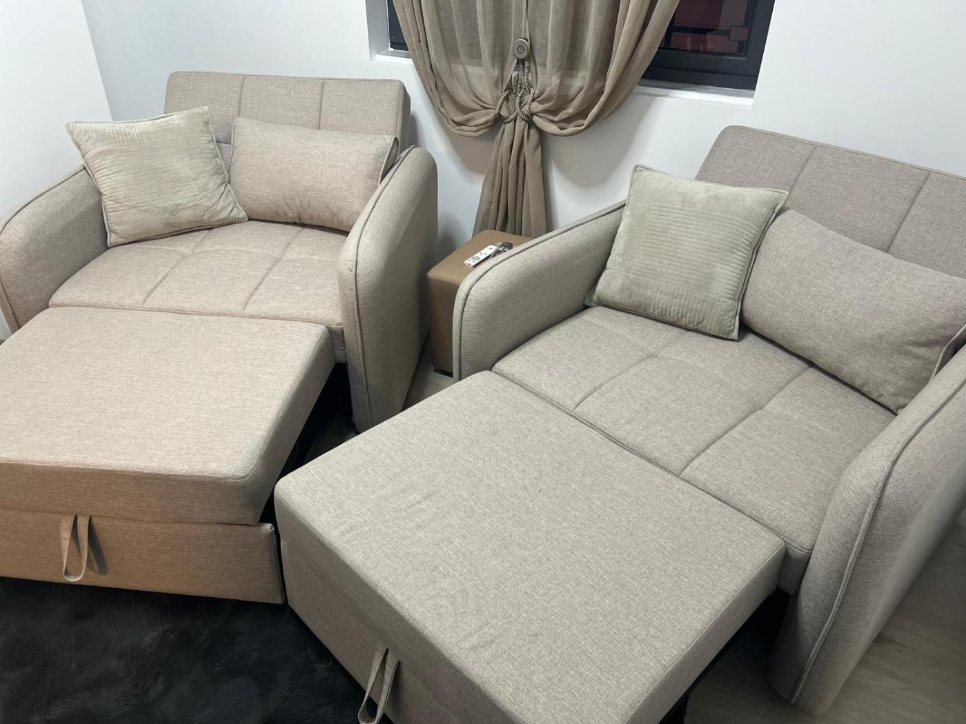 Two-Bedroom Apartment. This spacious apartment includes 1 living room, 2 separate bedrooms and 1 bathroom with a shower and free toiletries. In the well-fitted kitchen, guests will find a stovetop, a refrigerator, kitchenware and a microwave. This apartment is air-conditioned and has a seating area with a flat-screen TV, a washing machine, a private entrance, a tea and coffee maker, as well as a dining area. The unit has 3 beds. ;